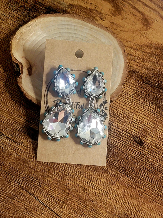Turquoise & Rhinestone Teardrop Dangle Earrings