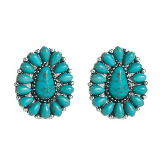 Western Stud Earrings - FLOWER BLOSSOM -Turquoise and Howlite Stone Style