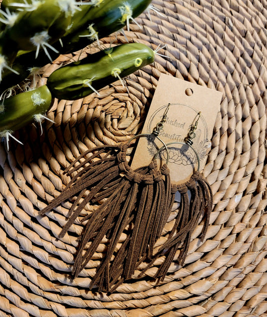 Suede Fringe Hoop Earrings