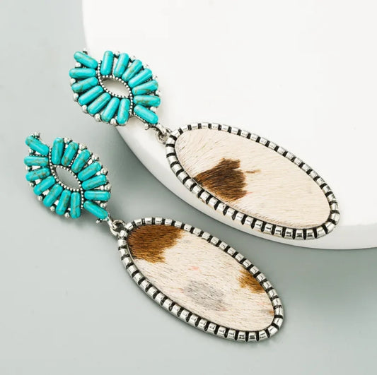 Western Fur Turquoise Leather Earrings