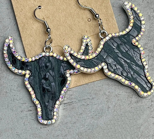 Rhinestone Steer Earrings
