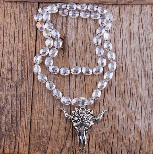 Rose Steer Beaded Pendant Necklace