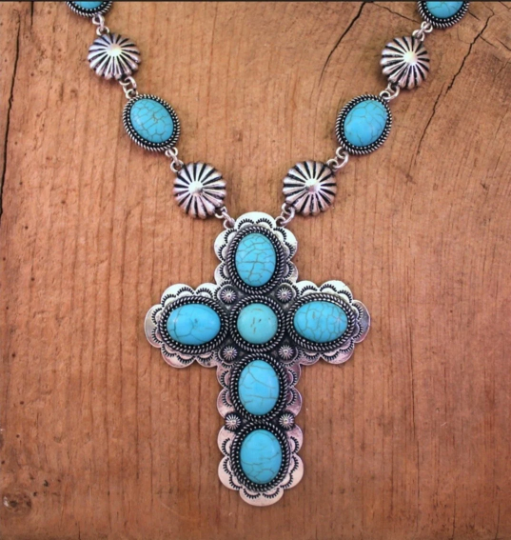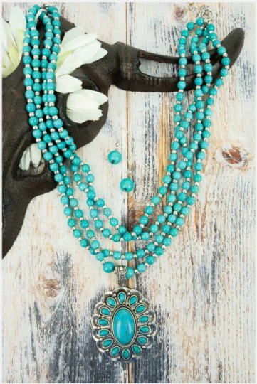 Yellow Beaded Turquoise Concho Necklace & Earring Set