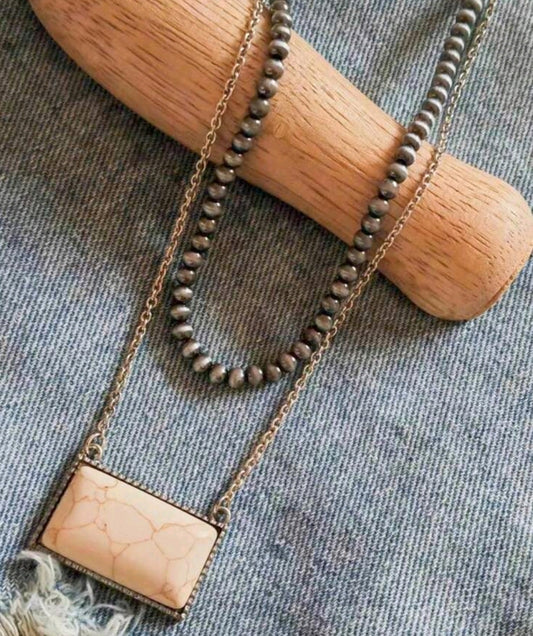 Western Layered Necklace - Navajo Pearl Inspired