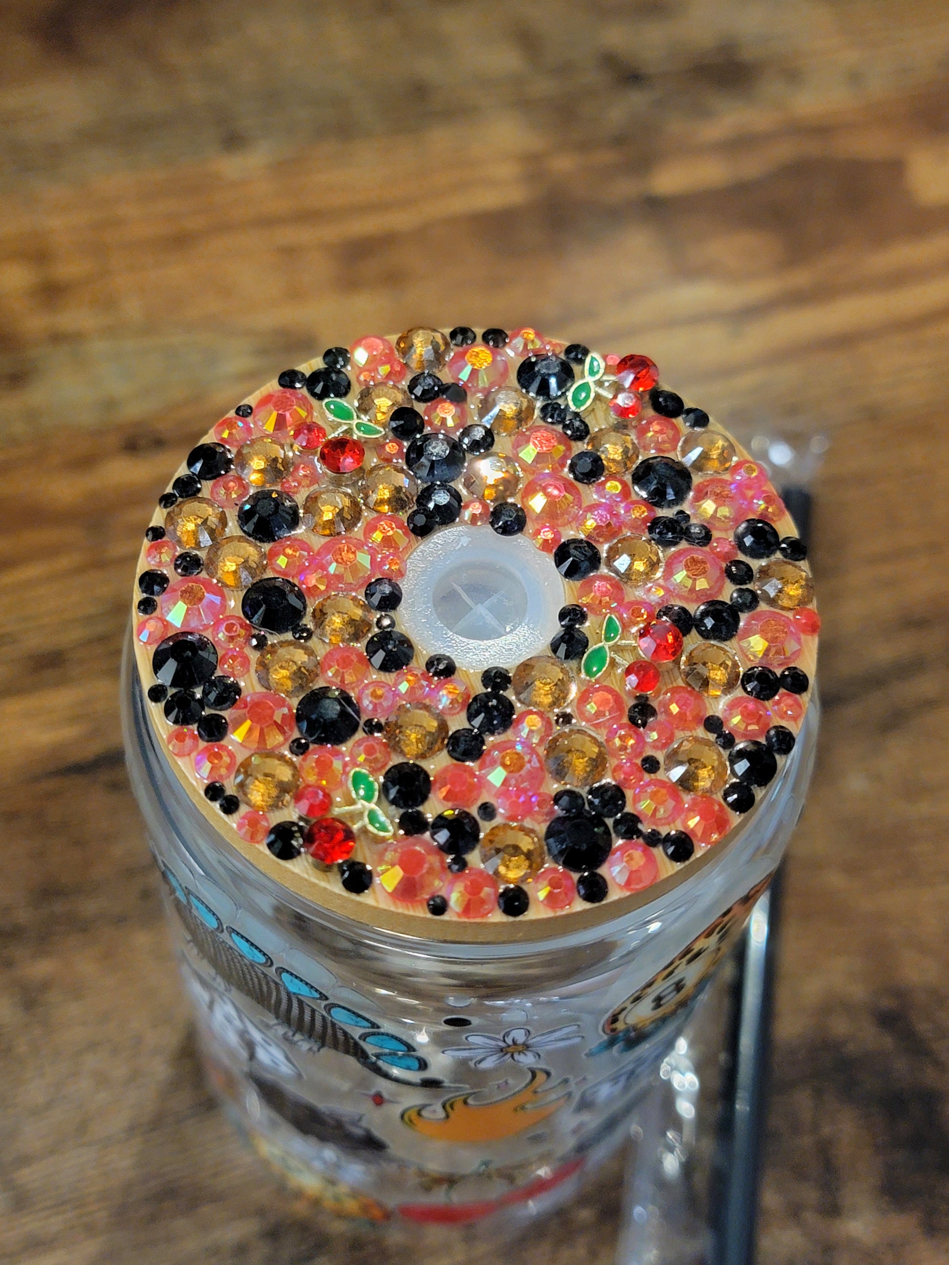 ☆Comes with upgraded plastic straw to match design & decorated lid (stones & charms)