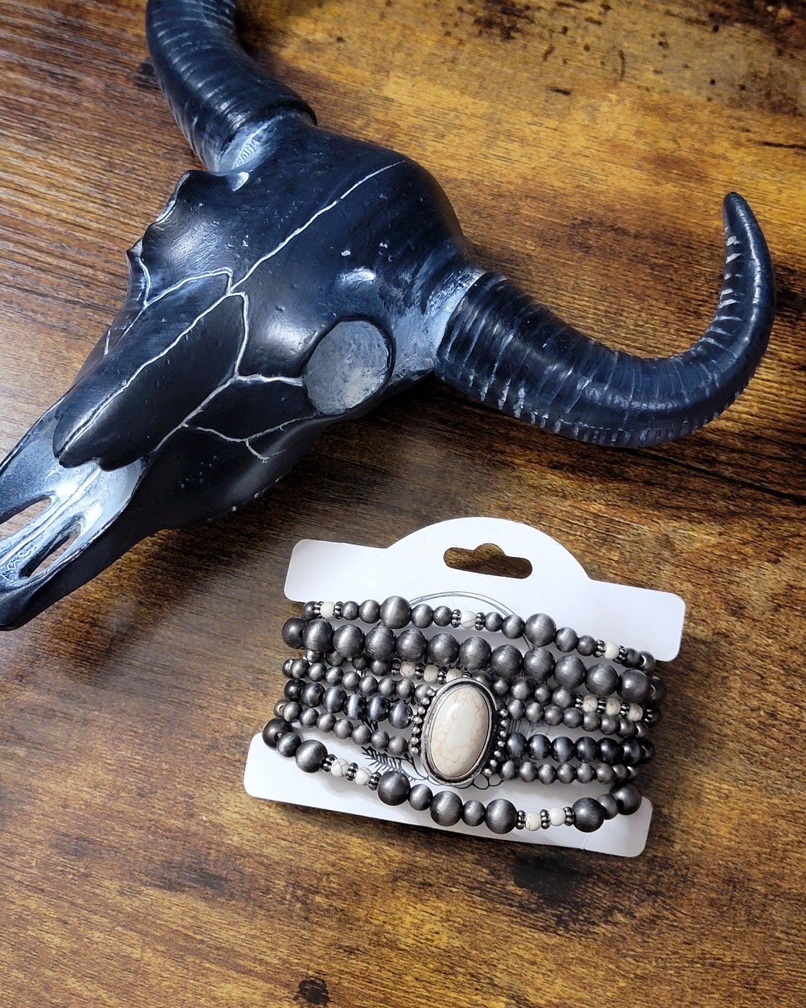 Howlite & Silver Pearl Beaded Bracelet Stack